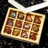 מארז 12 פרלינים עבודת יד – מארז פרלינים המטרף בליין הטעמים של השוקולטיירית רוית גליצקי הכולל טעמים מתחלפים לפי עונות וחגים , מהטעמים הקלאסיים של הקפוצ'ינו , קרמל טופי ומלח ים ,פרלינה לוז בשוקולד חלב ועוד עד לטעמים החמוצים שלנו החל מהפסיפלורה החושנית , הפרלין המכושף , אוכמניות בשוקולד לבן ומרמלדת קסיס
