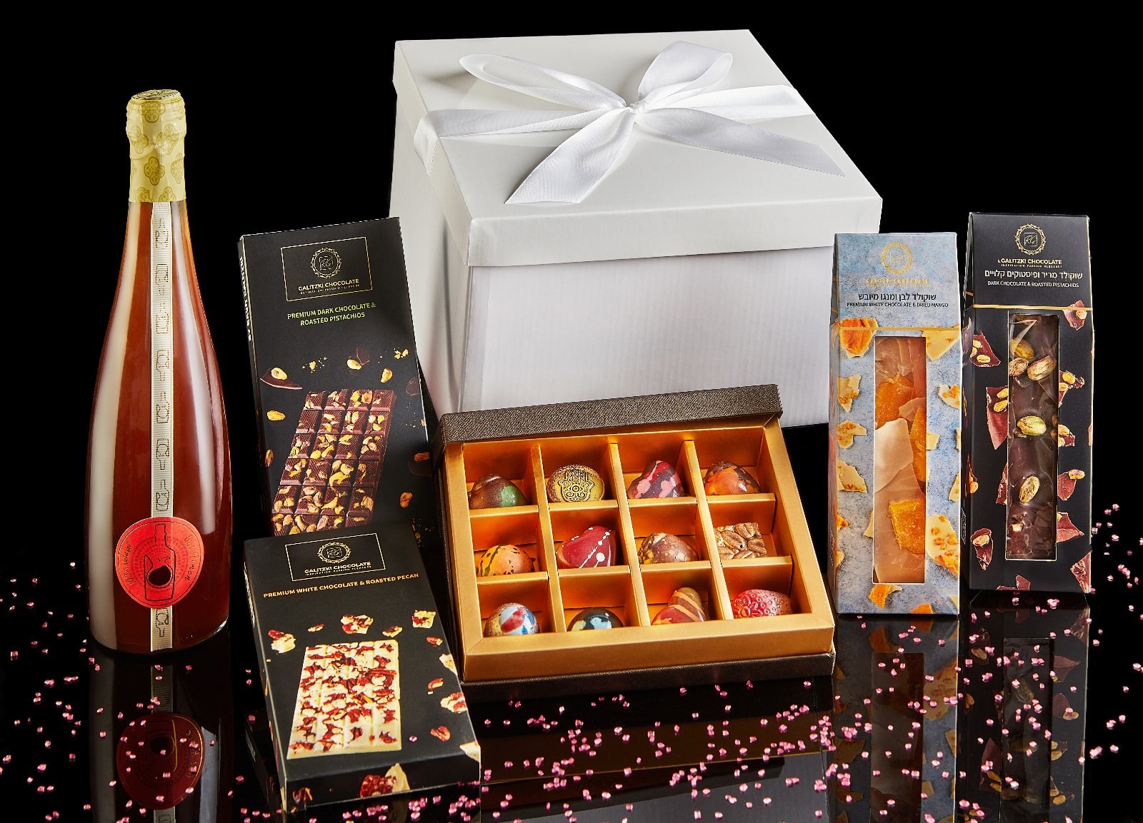 מארז 12 פרלינים של גליצקי עבודת יד בטעמי שבועות מיוחדים פירות בשמנת , גאנש שוקולד , ליקרים מיוחדים ועוד